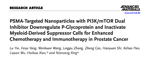 該篇研究構建了 PSMA 靶向、GSH 敏感的納米遞送系統 PSMA-NP/BEZ(負載 BEZ235),既能解決BEZ235 水溶性差、生物利用度低的問題,又能精準靶向前列腺癌并在高 GSH 微環境響應釋藥。其通過抑制 PAM 通路,破壞癌細胞功能、下調 P-gp 以增強zi杉醇化療敏感性,還能滅活 MDSCs 重塑免疫微環境,聯合 αPD-1 可增效免疫治療并誘導免疫記憶;體內實驗證實其安全,抑瘤效果優于游離 BEZ235 及非靶向系統,為晚期前列腺癌提供 “化療增敏 - 免疫重塑" 策略。